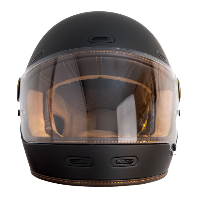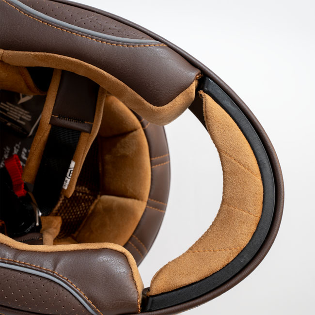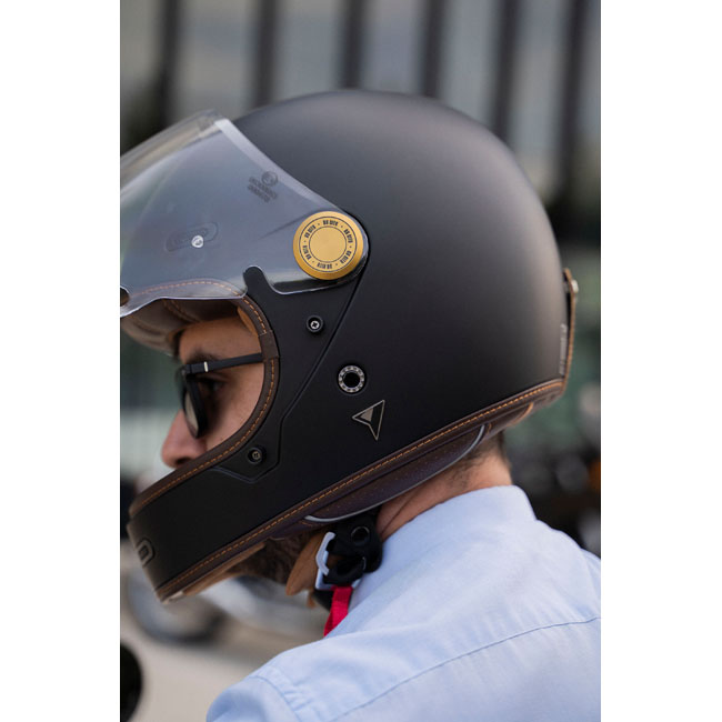 The By City Roadster II helmet; compact and refined design; comfortable; functional; and safe. It has been designed for those looking for a classic aesthetic and made of fiberglass. Leather interior and finish; with easy-to-use double ring fastening system for a perfect fit. Features removable; multi-density and washable interior padding; ventilation inlets and rear fastening for attaching goggles. Injected visor ensures clear vision in all weather conditions. The Roadster II helmet is ECE/UN R.22.06 approved.