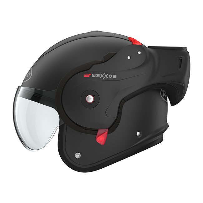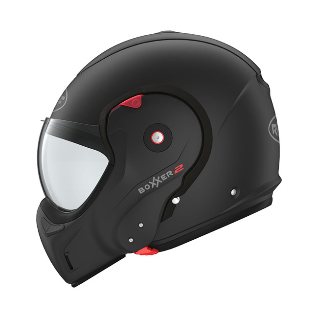 Fra BOXER til BOXXER; den 180 alsidige ROOF-hjelm har gennem årene nydt godt af mange innovationer, samtidig med at den har bevaret sin markante og bemærkelsesværdige karakter. Designet af ROOF BOXXER 2 udvikler sig mod strammere linjer, samtidig med at det ikoniske look fra ROOF BOXXER bevares. Hjelmen har en førsteklasses finish med en premium glasfiber skal og letvægts komfortstof kombineret med banebrydende teknologier: vendbar læbeforsegling; high-end komfort og Silent Lining; aktiv og passiv antidug. Den automatiske låsning af hagebeskytteren og den sekventielle oplåsning med én hånd sikrer hurtige og enkle bevægelser, samtidig med at du bevarer kontrollen over dit tohjulede køretøj. Et eksklusivt system, der er patenteret af ROOF for at opfylde den nye E22-06-standard; FleXLocker ROOF gør det muligt at låse hagebeskytteren i åben position, hvis det er nødvendigt, og integreres perfekt og æstetisk i hjelmens alsidighed i åben eller lukket position. Hagebeskytteren holdes sikkert på plads for at sikre kontrol over stød, hvor beskyttelsen er maksimal.