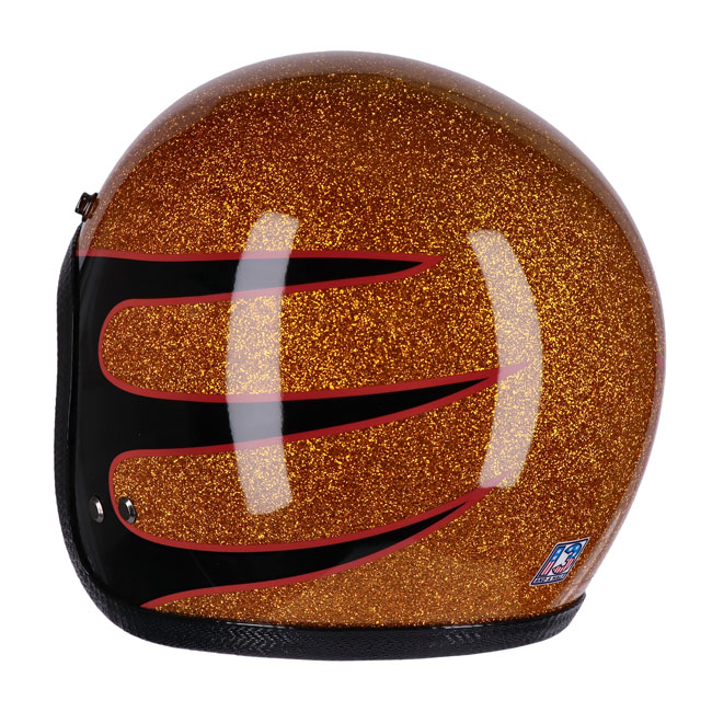 Hjelmen er lavet af glasfiber og fås i fire forskellige størrelser fra Extra Small til Double XL. Det klassiske design med vintage farver og grafik passer perfekt til din chopper stil.