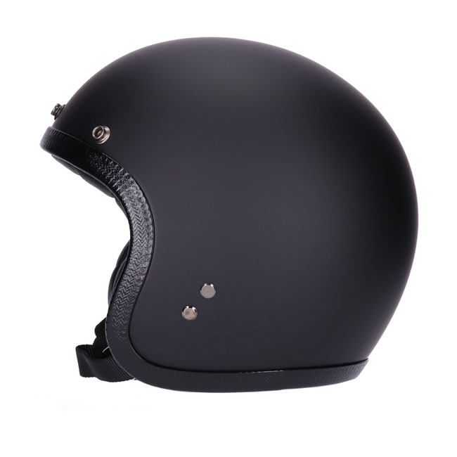 JETTson is the Jett's more serious; distinguished sibling. A premium plush lined openface helmet with a comfortable; firm fit that feels just right! Like a good pair of boots; the JETTson goes with anything; anywhere. It looks as good heading into in the city for work; as it does a cross-country road trip with friends. The helmet is made of `RQ LIGHT' fiberglass shell with a multi-density EPS liner and in four shell sizes for the closest possible fit. Features a classic double D-ring adjustable chinstrap with Microtech fleece padding; premium brass integrated visor/shield snaps; ECE-R22.06 approval and microtech fleece comfort lining with premium leather detailing. Including a removable black peak. Also bubble visors separately available in several colours.