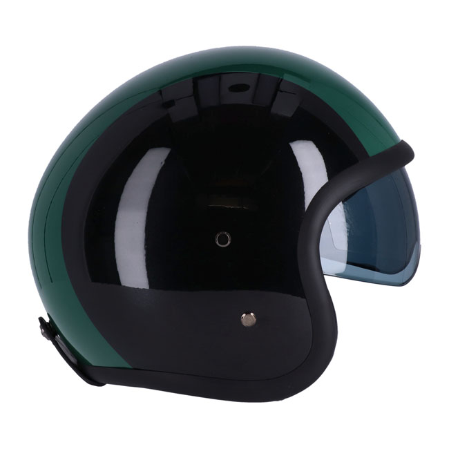 The perfect helmet for the urban commuter. We like to think of the Sundown as the Swiss Army Knife of the collection; a convenient lightweight multi-tool that's ready for anything. Wear it as an open-face when the weather is nice; and the moment you speed up; simply flip down the internal visor.It works for rain too; pull the visor and hey presto; ride in comfort! The helmet is made of `RQ LIGHT' fiberglass shell with a multi-density EPS liner and in two ergonomic shell sizes. Features a quick release microlock adjustable chinstrap with Microtech fleece padding; integrated retractable visor system; ECE-R22.06 approval and microtech fleece comfort lining which removable and washable with premium leather detailing and `RQ XXL' retro rubber trim.