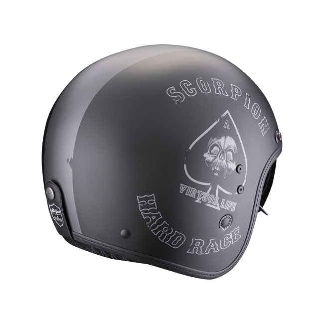 The Scorpion Belfast helmet is a modern jet helmet in retro style. Because the shell of this jet helmet is made of fiberglass; you hardly feel this helmet on your head. The small helmet shell and the integrated sun visor give this jet helmet a minimalist look. The sun visor is not visible when closed; but can easily be clicked down with gloves on when necessary. In addition to the sun visor; this jet helmet is also prepared to wear with motorcycle goggles. The interior of the Scorpion Belfast is very nicely finished with leather and a Kwikwick3 material that is hygienic and moisture wicking. The cheek pads are completely removable and can be washed easily. Unique to the Scorpion Belfast is that the liner is quite high in the helmet; so that it sinks far over your head. This makes the helmet look a lot smaller when you wear it. Thanks to the micro buckle closure; you can put the helmet on and off in no time. The helmet is ECE R22.06 certified.