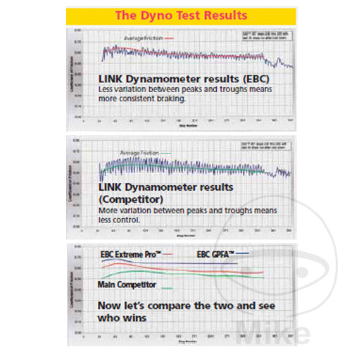 EBC Extreme Pro - Perfekt til vejen og til løbet! State-of sintermetal-teknologi er nu tilgængelig for alle nyere sport cykler og road racing maskiner fra EBC højteknologiske fabrik i Cleveland, Ohio. Den nye Extreme Pro bremsebelægning er blevet testet på testen, på racerbanen og på vejen, og det blev brugt i foråret 2008 på Daytona 200 løb 8 af de 20 chauffører. Det nye materiale har en optimal varmecyklus, føler sig bedre ved bremsearmen og sikrer en hurtig opbremsning indgriben. Ekstreme Pro puder er ideelle til hurtige vej og racermaskiner
